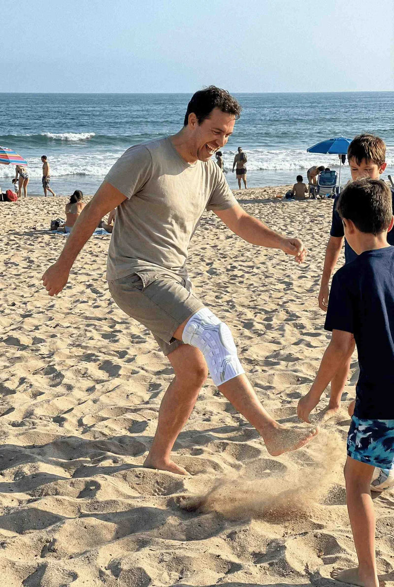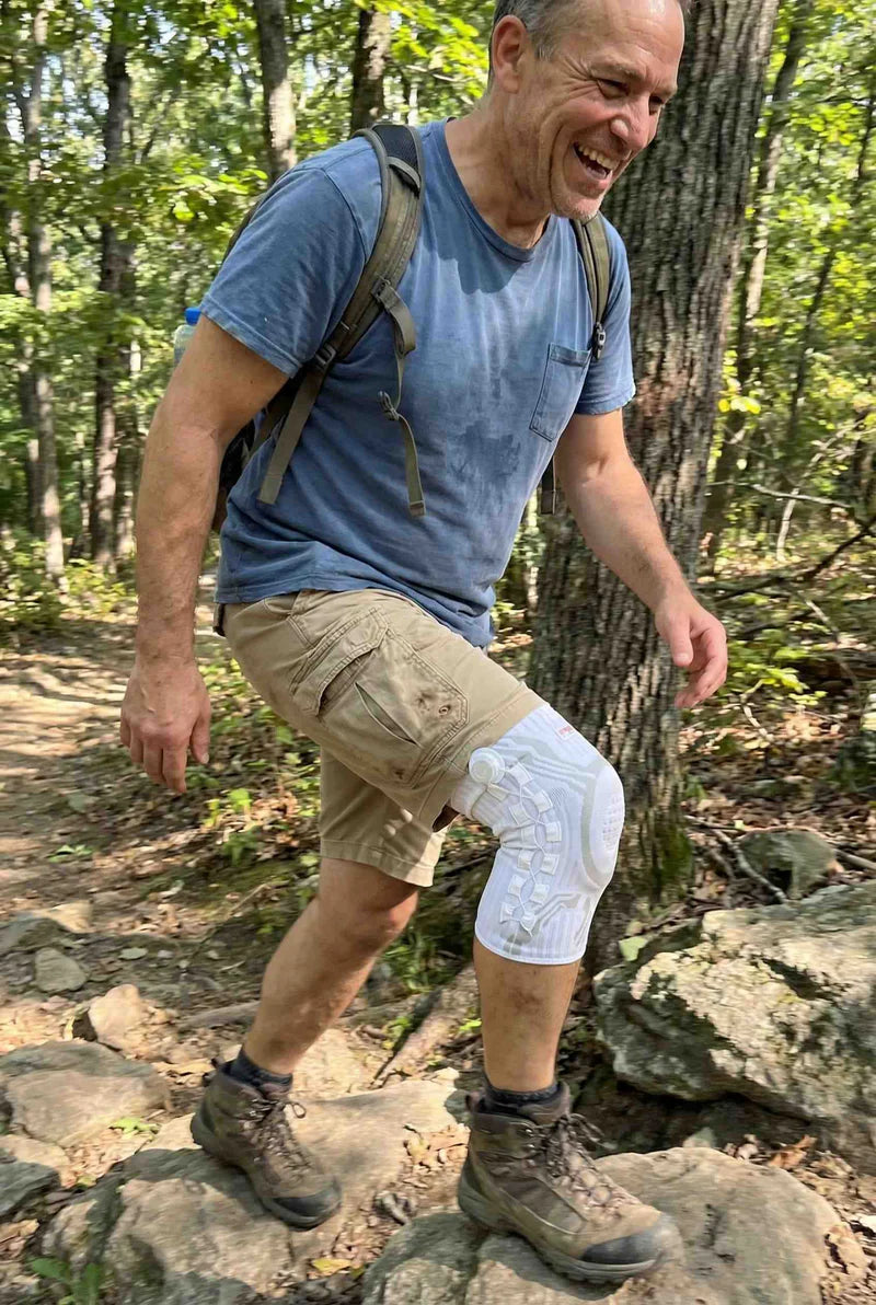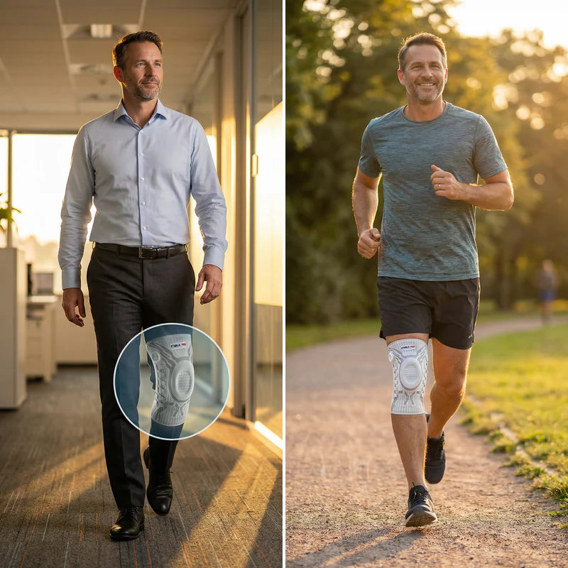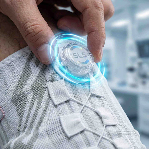 Zéro glissement même après 12 heures. La poignée en silicone verrouille la genouillère en place. Zéro inconfort. Le tissu thermorégulateur se porte sous les jeans, les pantalons de travail ou les shorts de sport sans que personne ne s'en aperçoive. Pas de tracas. Le cadran SLS™ ajuste la compression en 2 secondes, sans retirer l'attelle. Vous ne le sentirez pas. Ton genou non plus.